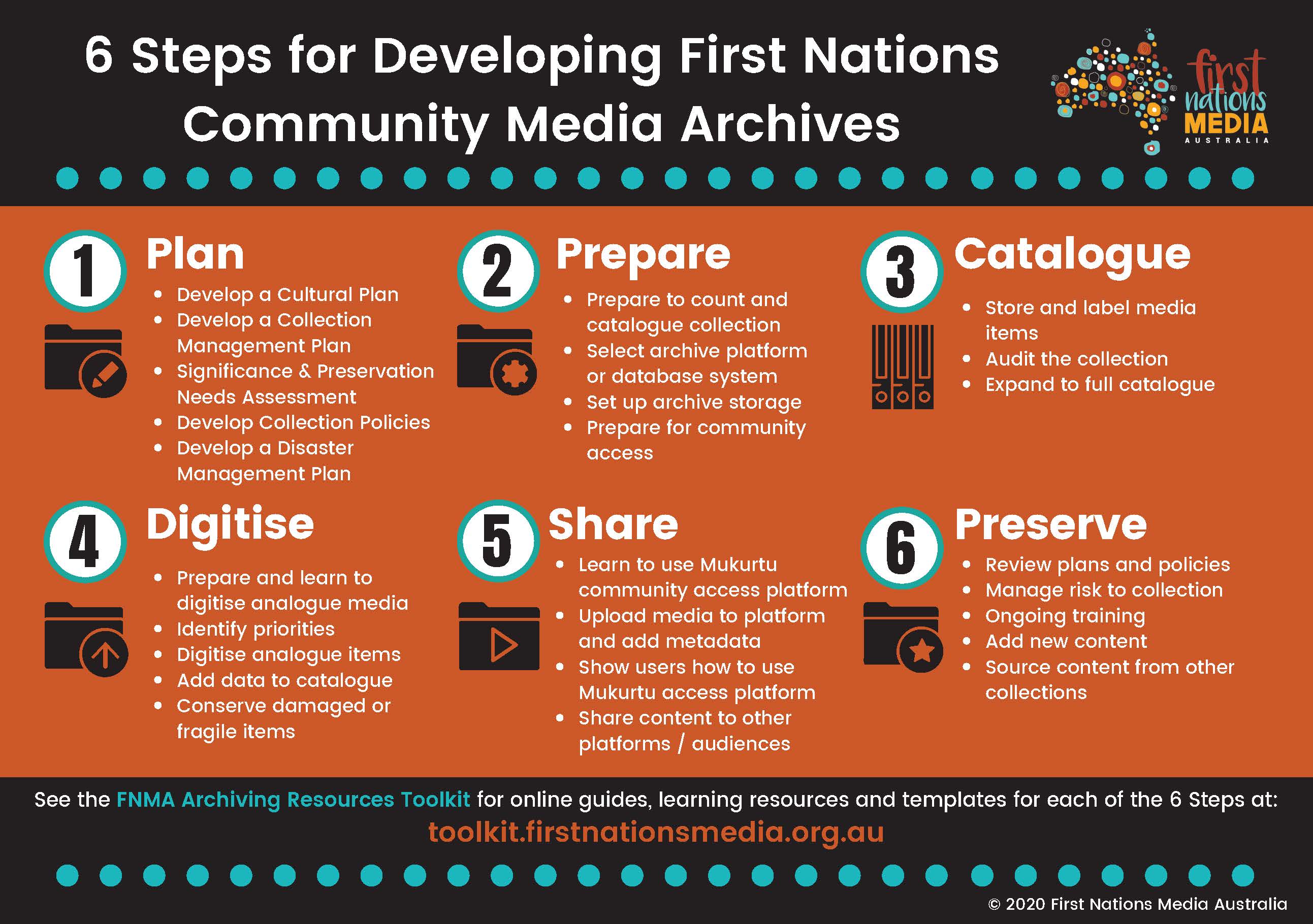 The resources in this toolkit are grouped according to the 6 Steps for Developing First Nations Community Media Archives.