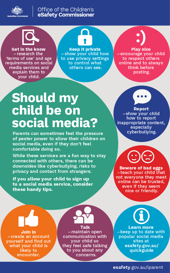 The Office of the Children’s eSafety Commissioner is a one-stop-shop for online safety. The Office provides Australians a range of up-to-date information and resources, coupled with a comprehensive complaints system to assist children who experience serious cyberbullying.